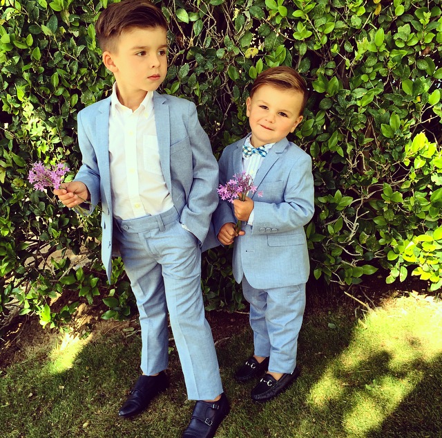 Happy Easter Everyone! The boys are wearing the most adorable blue suits that are perfect for spring!